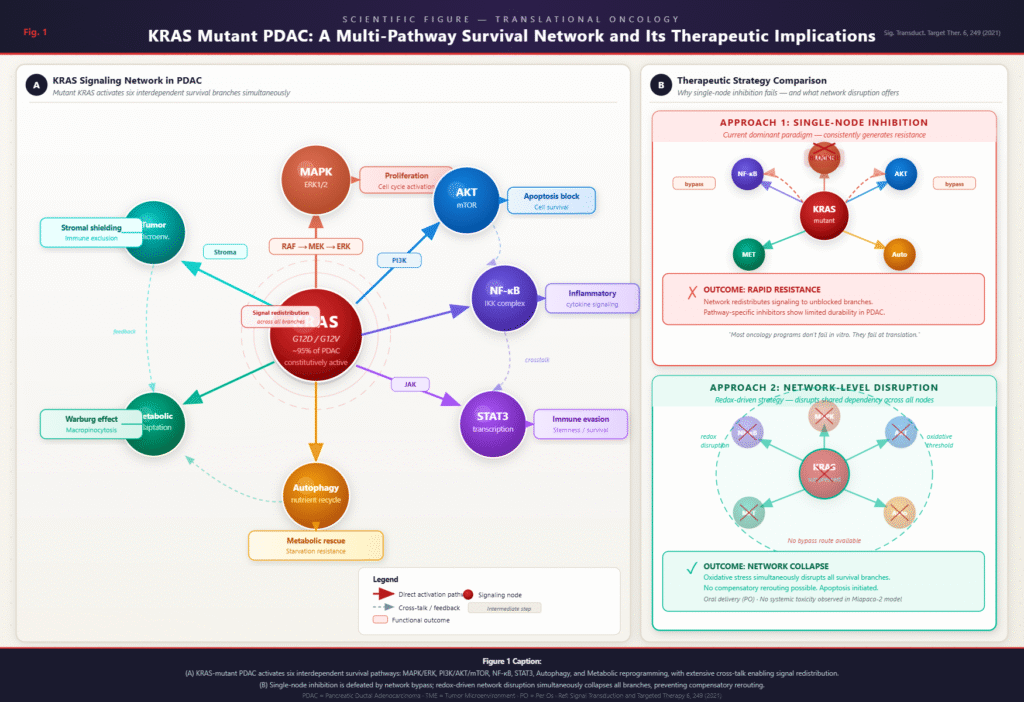 If the limitation of single-node inhibition is the network’s ability to reroute signaling, then the logical therapeutic response is to disrupt the network at a level that does not permit easy rerouting. This is the conceptual foundation that makes redox-based and other multi-target strategies scientifically compelling in PDAC.