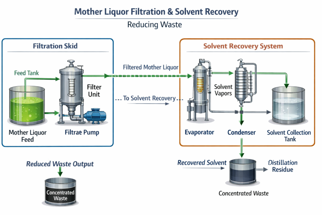 Designing for an industrial chemical scale up requires a proactive analysis of the entire material balance. Engineers must account for mother liquors and cleaning waste before the first batch begins. The integration of automated recovery systems can turn expensive spent solvents back into valuable raw materials, significantly reducing the overall risk profile of the operation.