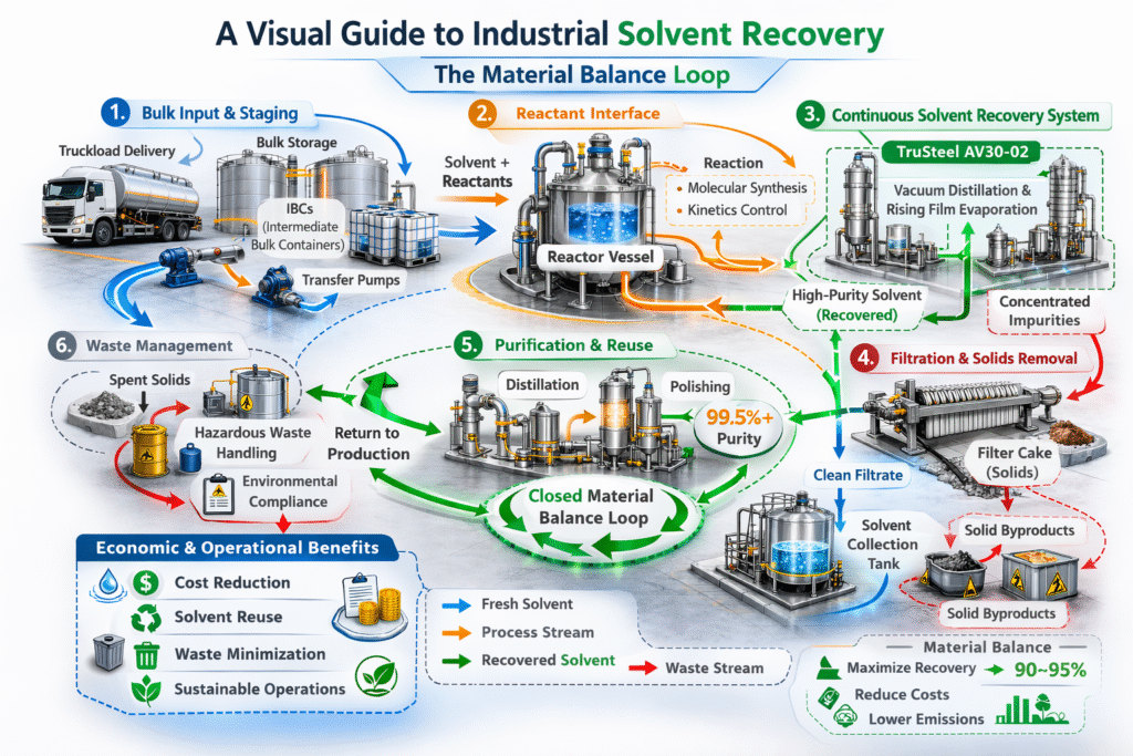 Solvent efficiency in industrial chemistry is the fundamental metric that determines whether a laboratory success can survive the transition to a commercial plant. In the research phase, solvents are viewed as secondary tools purchased in small bottles. However, at the production scale, they are purchased by the truckload, and their management becomes the dominant unit operation of the facility. While the chemistry creates the molecule, the solvent balance decides the profitability of the process. A failure to prioritize solvent efficiency in industrial chemistry often leads to quiet operational collapses caused by logistical bottlenecks and unmanageable waste streams.
